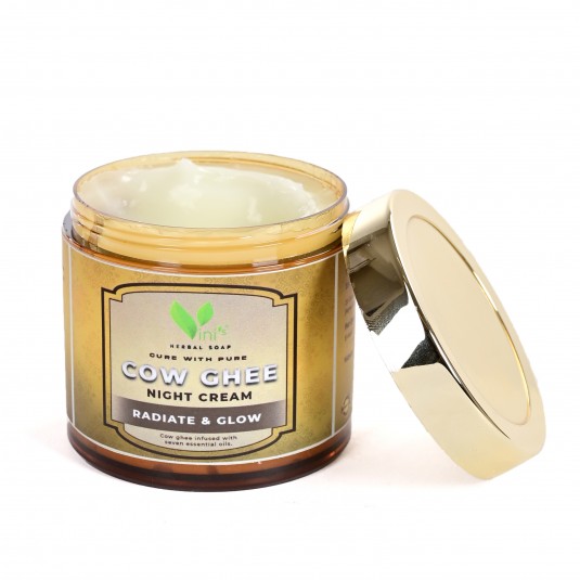 Rejuvenating & Brightening Ayurvedic Night Cream for Women, our Cow Ghee cream. It’s the ideal leave-in night treatment for skin that is young and naturally radiant. Clinical studies have shown that the use of this luxurious yet non-greasy lotion can brighten skin tone and